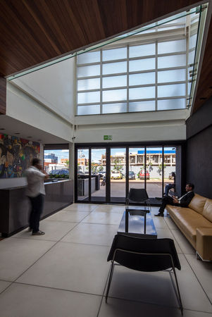 Os pavimentos de escritórios (1º e 2º) possuem as características de flexibilidade requeridas pelo programa. Para tanto, foi criada uma coluna de áreas comuns – banheiros, DML e copa – voltada para o átrio central, liberando o vão principal para conter apenas áreas de trabalho.